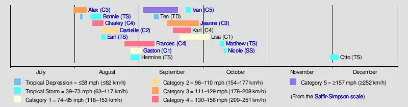 | Timeline of the 2004 Atlantic hurricane season | |||||