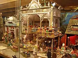 The Tinkertown Museum[1] is a folk art museum in Sandia Park, New Mexico. The museum was founded by artist Ross Ward, and feature's Ward's hand-carved miniature Old West town, as well as a hand-carved circus, a collection of over 280 wedding cake toppers,[2] tools, and other oddities, Ward's Jeep decorated in bottle caps and pennies, and a 35 foot antique sailboat, Theodora R, which circumnavigated the world from 1981 to 1991, piloted by Fritz Damler.[3][4] The museum has been described as the "jumbled reflections of a wildly creative mind",[5] and an "Americana wonderland of oddities".[6]