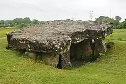 Tinkinswood or its full name Tinkinswood Burial Chamber (Welsh: Siambr Gladdu Tinkinswood), also known as Castell Carreg, Llech-y-Filiast and Maes-y-Filiast,[3] is a megalithic burial chamber, built around 4000 BC, during the Neolithic period, in the Vale of Glamorgan, near Cardiff, Wales.
