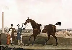 ![]() Tiresias with jockey and trainer. Engraving by James Pollard. | |