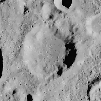 Tisserand is a lunar impact crater located just to the east of the larger crater Macrobius, to the northwest of the Mare Crisium. The crater was named after French astronomer François Félix Tisserand in 1935.[2]
