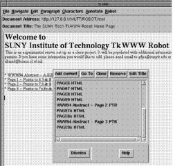Scott Spetka presented a paper at the Mosaic and the Web Conference in Chicago entitled "The TkWWW Robot" in October 1994.[50][51] TkWWW robot was one of the first web crawlers and internet bots based on tkWWW. It was developed over the summer at the Air Force Rome Laboratory, with funding from the Air Force Office of Scientific Research,[52] to build HTML indexes, compile WWW statistics, collect image portfolios, etc.[52] TkWWW robot's major advantage was its flexibility in adapting to virtually any criteria to guide its search path and to control its selection of data for retrieval.[50][53]