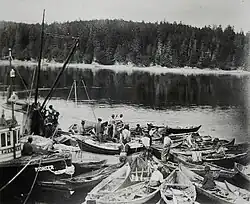 Tlingit fishermen selling salmon ca. 1890s-1910s