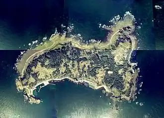 Tobishima (飛島), is an inhabited island located in the Sea of Japan, administered as part of Sakata, Yamagata Prefecture, Japan. The island, 2.75 km² in area, had 158 inhabitants as of 2020. The island has no airport, and access is normally by ferry to the city of Sakata on the mainland. The islanders are dependent mainly on commercial fishing and seasonal tourism.