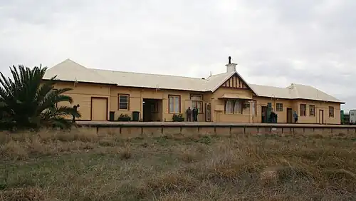 Tocumwal railway station is a heritage-listed closed railway station in the town of Tocumwal, New South Wales, Australia. It was once the break-of-gauge between the broad gauge Victorian Railways Tocumwal line from the south, and the standard gauge New South Wales Government Railways Tocumwal line from the north. However, only the line from Victoria is still open.