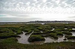 Old Hall Marshes is a nature reserve owned by the RSPB situated east of Tolleshunt D'Arcy.[17][18] The reserve was bought by the RSPB in 1984 as a refuge for overwintering brent geese.[19] The reserve occupies 459 hectares (1,130 acres)[19] of grazing marshes with brackish water, saltmarsh, reedbeds and two off-shore islands.[17] It was bought by the RSPB for £780,000 helped by donations to the Eric Morecambe Memorial Appeal.[20]