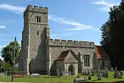 The parish church of St Nicholas is in the perpendicular style with a west tower, and a nave ceiling which was decorated in 1897 by Ernest Geldart. Villagers have contributed to a stained glass window to celebrate the millennium. The window, designed by local artist, Michael Smee, represents the village, the nearby River Blackwater, and the surrounding industries of agriculture and horticulture. The village's unique apple variety is also depicted..[4]