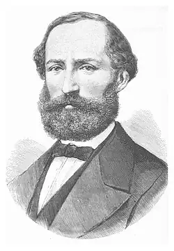 Frías served as a deputy during the National Assembly of 1861, contributing much to the crafting of the Constitution promulgated that year. A year later, during the general election of 1862, Frías participated as a candidate only to withdraw shortly thereafter and declare his support for General Gregorio Pérez.[34] José María de Achá, the provisional President of Bolivia since the overthrow of Linares, won the elections. However, Achá’s tenure was unstable and faced constant rebellions. On 28 December 1864, Mariano Melgarejo led a successful coup against Achá, leading to Frías' exilement to Europe.[35]