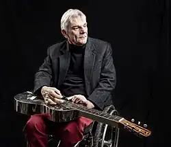 Due to his disability, (a Spinal Injury caused by a road accident in 1974), Tom has developed a new and unique approach and method of playing his instrument. Despite his impairment, Tom is recognised as one of the world's finest lap steel guitar players.