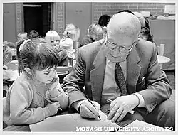 ![]() Tom Gourdie at Monash University, giving a guest class to exceptional children. Photographer Richard Crompton, 1985 | |
