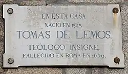 Tomás de Lemos (Thomas) (Ribadavia, 1555 – Rome, 23 August 1629) was a Spanish Dominican theologian and controversialist.