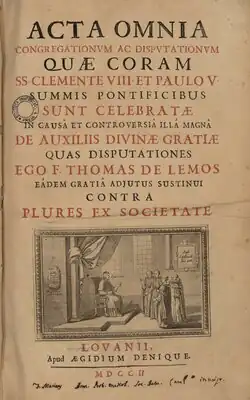 - Acta omnia Congregatioum et disputationum, quae coram SS. Clemente VIII et Panlo V Summis Pontificibus sunt celebratae in causa et controversia illa magna de auxiliis divinae gratiae (Louvain, 1702)