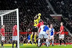 Kuszczak punching the ball away in a 2–1 home win over Blackburn Rovers on 21 February 2009