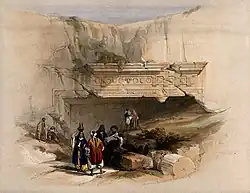 The tomb is mentioned by the Roman-Jewish historian Josephus in the first century CE.[12] He writes about Helena, queen of Adiabene, a small kingdom from Mesopotamia (today part of northern Iraq) who came to Jerusalem at the end of the Second Temple Period. Her family converted to Judaism and built a palace in the area today known as the City of David. Helena's son Monobaz II had her remains and those of his brother buried "three stadia from Jerusalem." Medieval Europeans mistakenly identified the tomb as belonging to the kings of Judah.[13]