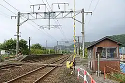 Tomiura Station (富浦駅, Tomiura-eki) is a railway station on the Muroran Main Line located in Noboribetsu, Hokkaidō, Japan operated by Hokkaido Railway Company (JR Hokkaido).