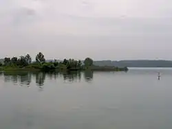 The Little Tennessee River traverses northern Monroe County for roughly 40 miles (64 km) between its Calderwood Lake impoundment near the Tennessee-North Carolina border and its mouth along the Tennessee River near Lenoir City. The impoundment of the river in 1979 by Tellico Dam created Tellico Lake, which covers the river's lower 33 miles (53 km) as well as the lower 22 miles (35 km) of its tributary, the Tellico River.[1]
