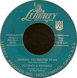2. ^ "Original versions of Tonight You Belong to Me written by Lee David, Billy Rose | SecondHandSongs". secondhandsongs.com. Retrieved 2021-08-06.