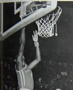 As a junior, he was the starting point guard on Poly's basketball team, which went 30–1 and won the Southern Section 4A title that year. The final was played for more than 10,000 fans at the Long Beach Arena, where Gwynn scored 10 points in the 69–50 victory over Buena of Ventura.[25] His teammates included Michael Wiley, who became a professional player in the National Basketball Association (NBA).[31] In Gwynn's senior year, Poly was 23–7, and again advanced to the championship round, despite finishing third in the Moore League. Their bid for a second straight title ended with a 57–50 loss to Pasadena.[25] Gwynn averaged 10.3 points and totaled 178 assists for the season, and he was named to the All-CIF Southern Section Second Team.[25][31][32] After the season, he switched to baseball, which was already well underway for the year. Despite his shortened season, he earned first-team All-Southern Section honors after batting .563. Poly's baseball team's struggles taught him to remain focused, continue executing, and stay productive.[25][26]