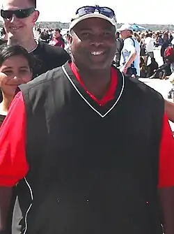Gwynn attended Long Beach Polytechnic High School, a high-profile sports school.[25][26] In high school, Gwynn considered himself to be "kind of a nerd" and also shy, particularly with girls. His friends often attended parties with drugs and alcohol on Friday nights, but Gwynn abstained from such activities to avoid disappointing his parents and squandering future opportunities.[27] Gwynn worked during the summers. One year, he got a job as a softball coach at Silverado Park after his name was chosen in a lottery drawing for the position; some of his responsibilities included managing the field, painting the foul lines, and picking up trash from the field. Another year, he was on a crew that painted athletic facilities in Long Beach public schools.[28] Gwynn also played summer baseball for the Long Beach Jets (coached by 1964 Olympic high jumper John Rambo) in the Joe DiMaggio Summer League at Blair Field.[29] Gwynn was the center fielder and his younger brother Chris was on the team.[30] One year, Gwynn and the Jets won the local league and advanced to the state tournament in San Rafael of Northern California; they were defeated in the championship game.[29]