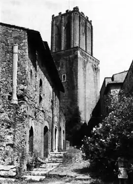 The Torre delle Milizie next to the convent of St. Catherine at Magnanapoli, later excavated and converted into the museum of the Trajan's Markets.