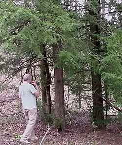 In subsequent years, seeds or potted seedlings were also given to planters in additional eastern states,[45] and as far north as Wisconsin, Michigan, and New Hampshire.[46] Several volunteer planters are trained (and sometimes employed) as professional ecologists or foresters, but most have acquired horticultural skills outside of a profession and are eager to assist an endangered plant. The volunteer in Cleveland, Ohio, Fred Bess, is a professional landscaper, and in 2017 his grove produced a handful of seeds. By 2023, more than a thousand seeds were produced annually, thus setting the record for the farthest north seed production in a fully outdoor setting.[47]