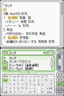 Touch Dictionary (터치 딕셔너리, Teochi Diksyeoneori) (formerly known as Touch Dic) is a dictionary software title for the Nintendo DS released in 2005 exclusively in South Korea.