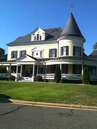 Tower House, also known as Edgewater and Marsland-on-the-Potomac, is a historic home located near Alexandria, in Fairfax County, Virginia. The original portion was built in 1888 by John Young, who inherited the land from his father, Lewis, in 1879. At that time it was in the Italian Villa style. An addition was added to the rear in 1888-9 by owner, Isaac N. Jones. The house was remodeled to its present form in 1900-1901 by railroad executive James Yeomans. James A. Drain, Sr. owned it from 1920 until 1936. He renamed it Marsland-on-the-Potomac after the maiden name of his wife Ethel. From 1941 until 1994, the religious group Baraca Philathea used it for various purposes. Since then, it has undergone extensive restoration by its present owner.[3] It is a 2+12-story frame dwelling in a transitional Queen Anne-Colonial Revival style. It features a steeply pitched hipped roof and a prominent, semi-circular corner tower.[4]