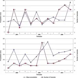 Prolonged and intense rainfall periods are significantly associated with the reactivation of toxoplasmic retinochoroiditis.[6] Changes promoted by this climatic condition concern both the parasite survival in the soil as well as a putative effect on the host immune response due to other comorbidities.