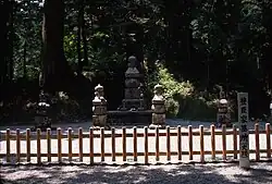 When Hideyoshi died in 1598, the five regents he had appointed to rule in Hideyori's place began jockeying amongst themselves for power. Tokugawa Ieyasu seized control in 1600, after his victory over the others at the Battle of Sekigahara. Hideyori's arranged marriage to Senhime, the seven-year-old granddaughter of Ieyasu, was designed to mitigate Toyotomi clan dissension and plotting.[2] In this period, the eight-year-old boy practiced calligraphy with phrases wishing for peace throughout the world.[3]