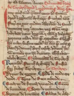 The Tractatus is accompanied in both the Courtenay Compendium and the Gonville and Caius manuscript by two letters. These separate texts have often been mistaken as parts of the Tractatus.[28] In the Courtenay Compendium, the scribe even placed the explicit marking the end of the Tractatus after the letters.[3][28]