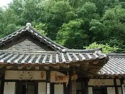 1. ^ Jeon, BongHee (2016). "3: Hanok: The Formation of the Traditional Korean House". A Cultural History of the Korean House (PDF). Seoul: Seoul Selection. p. 49. ISBN 978-89-97639-63-2. The gulpijip (oak-bark-roofed house) and neowajip (shingled house) are found in the northeastern part of the Korean peninsula, as well as in Korea's more mountainous areas. ... Gulpijip uses roofing made with the bark of trees such as cone-fruit platycarya, sawtooth oak, and cedar, which all have relatively thick bark.