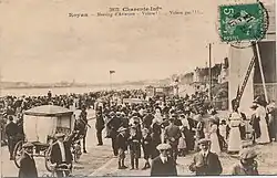 Steam tramway, ready to depart from Grande-Côte, 1904A steam train at the Casino de FoncillonSteam tramway in the sea-side resort of PontaillacSteam tramway at Café des Bains in Royan, 1930sInauguration of a Campagne petrol railcar (Automotrice) by Gaston Nougarède, director of the SGTR on the left in front of the railcar with black cap. View of the inaugural train departing from Ronce-les-Bains for the return journey of the guests, 1924.[3]