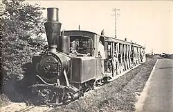 The first metre-gauge Decauville railcars (Automotrice) were procured around 1903.[4] From 1924, six petrol-powered Campagne railcars from the 1910s were used on the 600 mm forest railway lines, both of which ran on the Groupe Laborie narrow-gauge lines in 1914 after the outbreak of the First World War and were finally used as light railcars on the metre-gauge lines from Cormeilles to Glos and Montfort-sur-Risle in the Euredepartment around 1933.[5][Note 2][6]