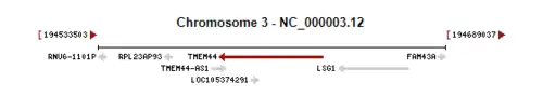 TMEM44 gene is located at the end of the long arm of chromosome 3 in humans (Homo sapiens).[7]