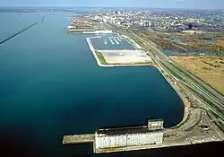 The Buffalo Outer Harbor in 1992. Northeast of the city is the Niagara River.