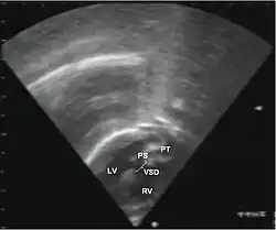 Abbreviations: LV and RV=left and right ventricle, PT=pulmonary trunk, VSD=ventricular septal defect, PS=pulmonary stenosis.
