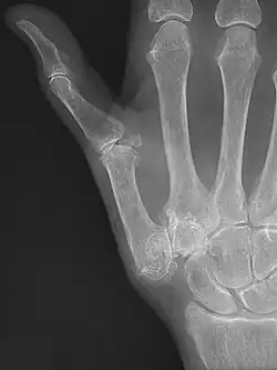 - ^ Wilkens, Suzanne C.; Tarabochia, Matthew A.; Ring, David; Chen, Neal C. (May 2019). "Factors Associated With Radiographic Trapeziometacarpal Arthrosis in Patients Not Seeking Care for This Condition". Hand (New York, N.Y.). 14 (3): 364–370. doi:10.1177/1558944717732064. ISSN 1558-9447. PMC 6535938. PMID 28918660.