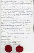 The treaty had two parts: a political treaty (seven articles) and a military convention (seventeen articles).[1] The Romanian government was to declare war on Austria-Hungary, in accordance with the stipulations in the military convention, on August 28 (new style) the latest, according to the political treaty. In exchange, it was to receive the following territories: