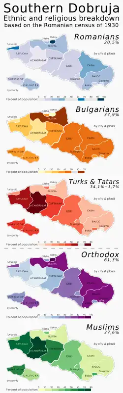 ![]() Map of Southern Dobruja, ceded from Romania to Bulgaria according to the Treaty of Craiova | |