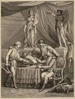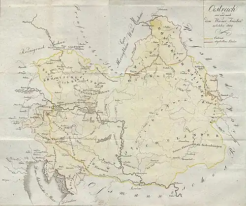 The Treaty of Schönbrunn (French: Traité de Schönbrunn; German: Friede von Schönbrunn), sometimes known as the Peace of Schönbrunn or the Treaty of Vienna, was signed between France and Austria at Schönbrunn Palace near Vienna on 14 October 1809. The treaty ended the Fifth Coalition during the Napoleonic Wars, after Austria had been defeated at the decisive Battle of Wagram on 5–6 July.