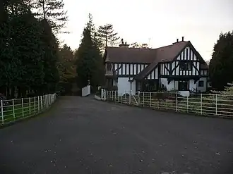 ![]() "A pert half-timbered lodge" - the only element of Tredean visible from the road | |