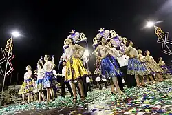 During parades, tricanas from the six traditional quarters wear dresses in their neighborhood colors.[1]