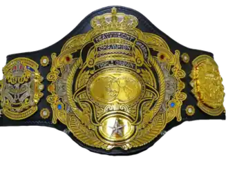 Unlike most unified championships, the Triple Crown was originally represented through the continued use of the three individual championship belts. From 1989 to 2000, the holder of the Triple Crown was also presented by Nippon TV (AJPW's broadcaster at the time) with a large, globe-shaped trophy bearing the words "World Heavyweight Champion". The original title belts were returned to All Japan founder Giant Baba's widow Motoko in August 2013 and a new single title belt incorporating designs from the three original belts was made.[2] The new title belt, which featured three plates representing the three original title belts, was unveiled on October 27.[3] One of the plates includes the text "Jumbo Tsuruta Apr. 18 1989", representing the crowning of the inaugural champion.[4] There have been a total of 31 recognized champions who have had a combined 70 official reigns. Six men in history have held the championship for a continuous reign of one year (365 days) or more: Mitsuharu Misawa, Suwama, Kento Miyahara (who have each achieved the feat twice), Jumbo Tsuruta, Satoshi Kojima and Toshiaki Kawada.