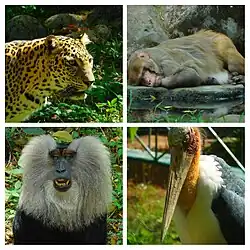 ![]() A Collage of animals at Thiruvananthapuram zoo. Counter clockwise from top : Indian Leopard, Rhesus Monkey, Lesser Adjutant, Lion Tailed Macaque. | |