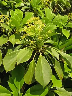 Trochodendron is a genus of flowering plants with one living species, Trochodendron aralioides, and six extinct species known from the fossil record. It was often considered the sole genus in the family Trochodendraceae, though botanists now also include the distinct genus Tetracentron in the family.