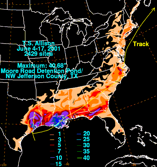 - ^ Hydrometeorological Prediction Center (2006). "Rainfall totals from Tropical Storm Allison". Retrieved May 17, 2006.