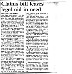 One of about a dozen major contributors to the ongoing deficit situation was Dudley Tregent & Co, which involved defalcations of between $10 million and $14 million of clients' funds.