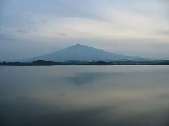 Tsugaru Fujimi Lake (津軽富士見湖, Tsugaru Fujimi-ko) also known as Mawarizeki Ōtameike (廻堰大溜池) is a reservoir that is located almost entirely within the town of Tsuruta in Aomori Prefecture, Japan, though a portion of its southern shore lies within the city of Hirosaki. It was built in 1660 to collect snowmelt in order to irrigate the fields in the surrounding area.[1]