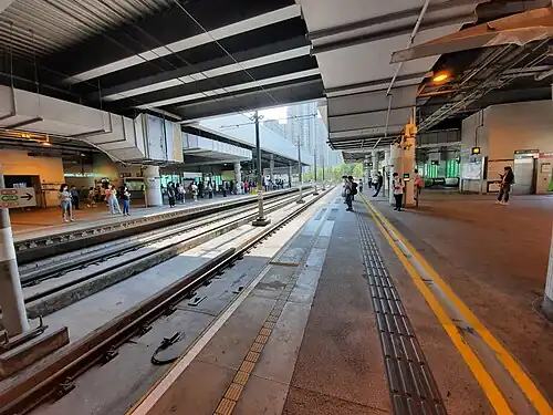 Tuen Mun (Chinese: 屯門) is an MTR Light Rail stop which belongs to zone 2. There are two platforms in Tuen Mun stop. This Light Rail stop is located above Pui To Road and Ho Pong Street and north of Tuen Mun Park. It provides service for nearby residents and is an interchange station for the Tuen Ma line, formerly known as the West Rail line.[1]