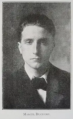 Duchamp was well-known in New York for his infamous Nude Descending a Staircase, No. 2, which had created a scandal at the 1913 Armory Show,[17][18][19] and the Cubist style of which he had already, by then, dramatically shifted away from.[20]